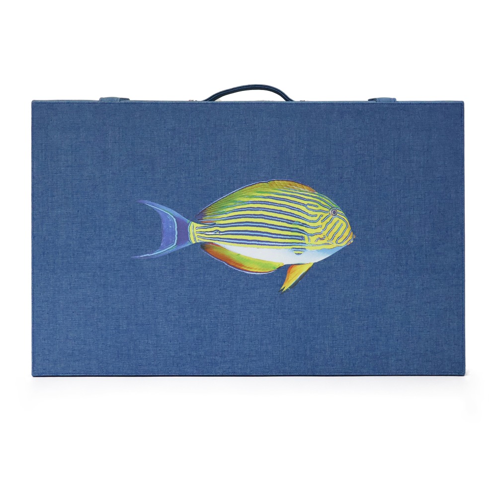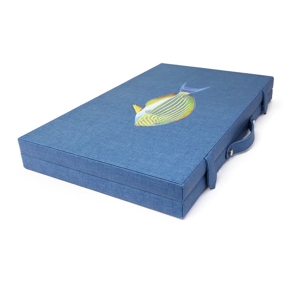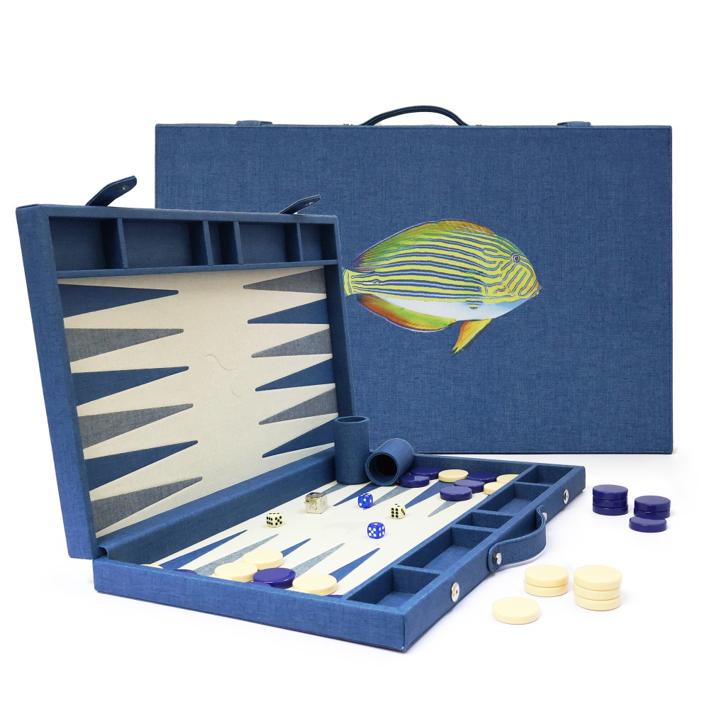 : BACKGAMMON LARGE FLOWER OCEAN FISH STRIPES