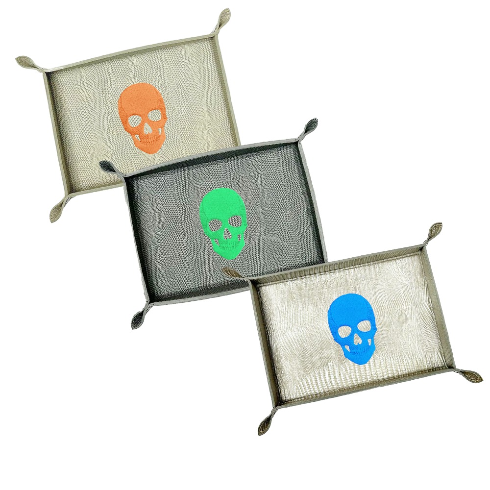 EMPTY POCKETS LARGE TEJUS SILVER BEIGE SKULL NEON GREEN
