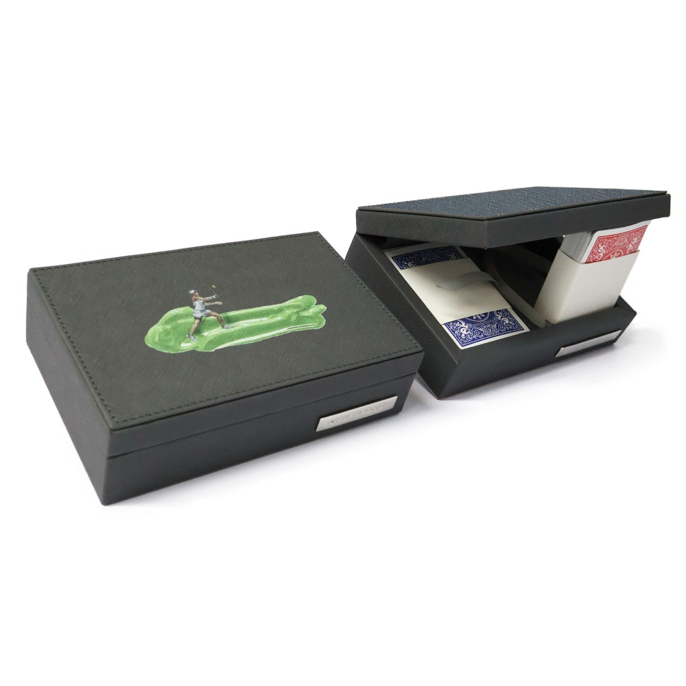 Immerse yourself in elegance and sophistication with our deck of cards board game, a set of two decks, created in imitation leather with texture and handcrafted by talented Mexican artisans. Every detail of this card box has been carefully designed to provide not only fun, but also a decorative accessory that will elevate any space. Enjoy unforgettable moments with friends and family while playing with this elegant deck of cards.
