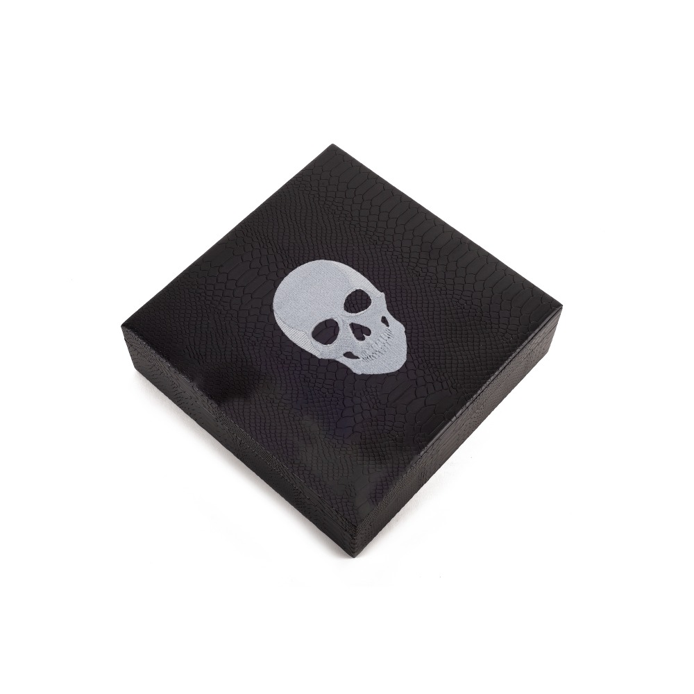 It features an embroidered skull design on the cover achieving a unique and colorful touch!