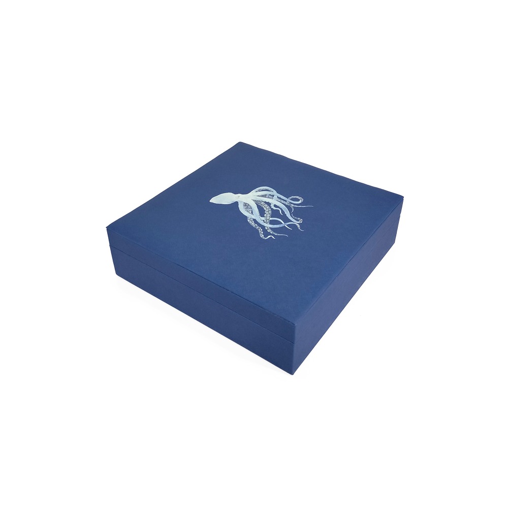 SQUARE JEWELRY BOX MEDIUM BLUE LINING OCTOPUS